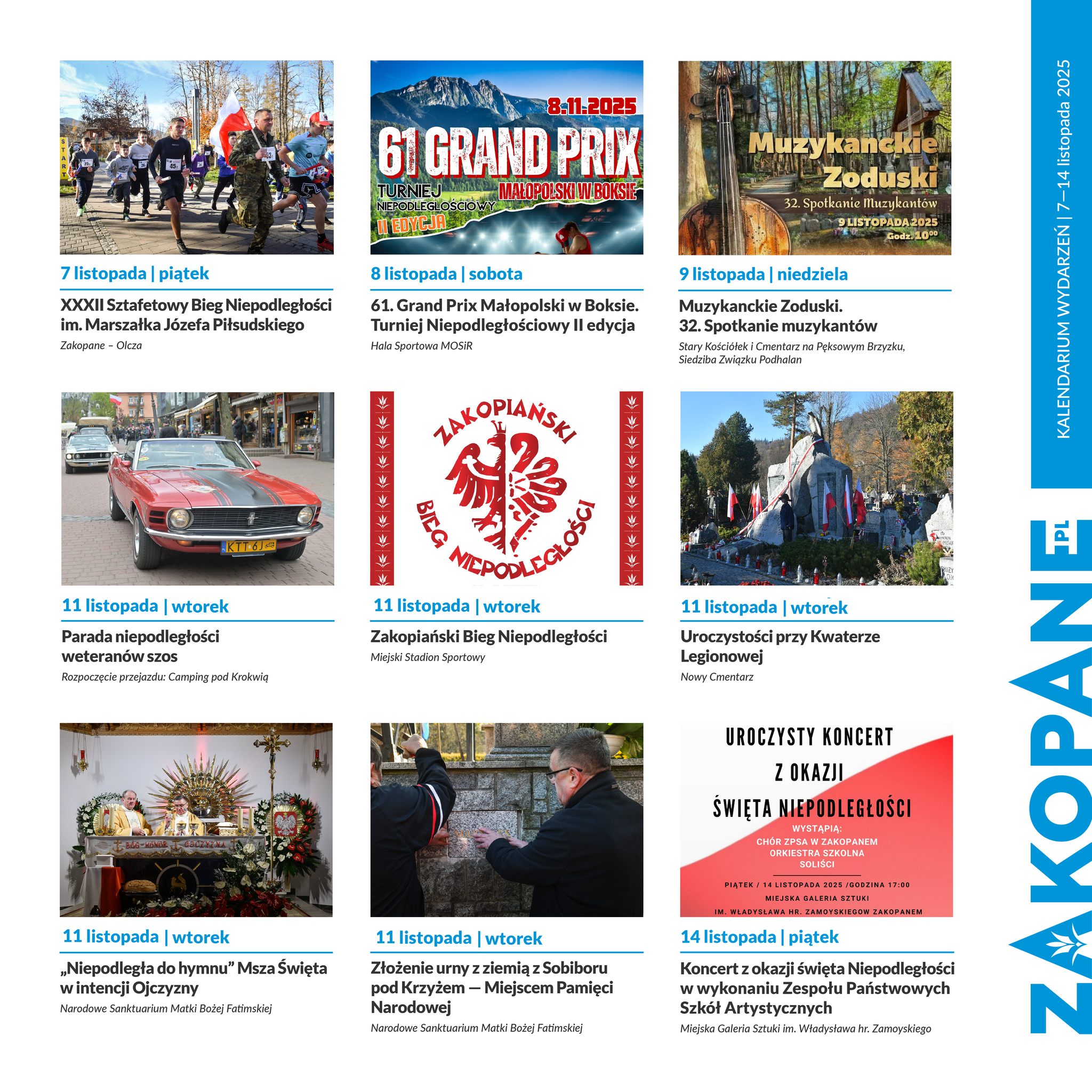 Najbliższe dni w Zakopanem upłyną pod znakiem Narodowego Święta Niepodległości. Czekają nas uroczyste chwile pełne patriotyzmu, sportowe emocje, parada samochodowa oraz muzyczne doznania...