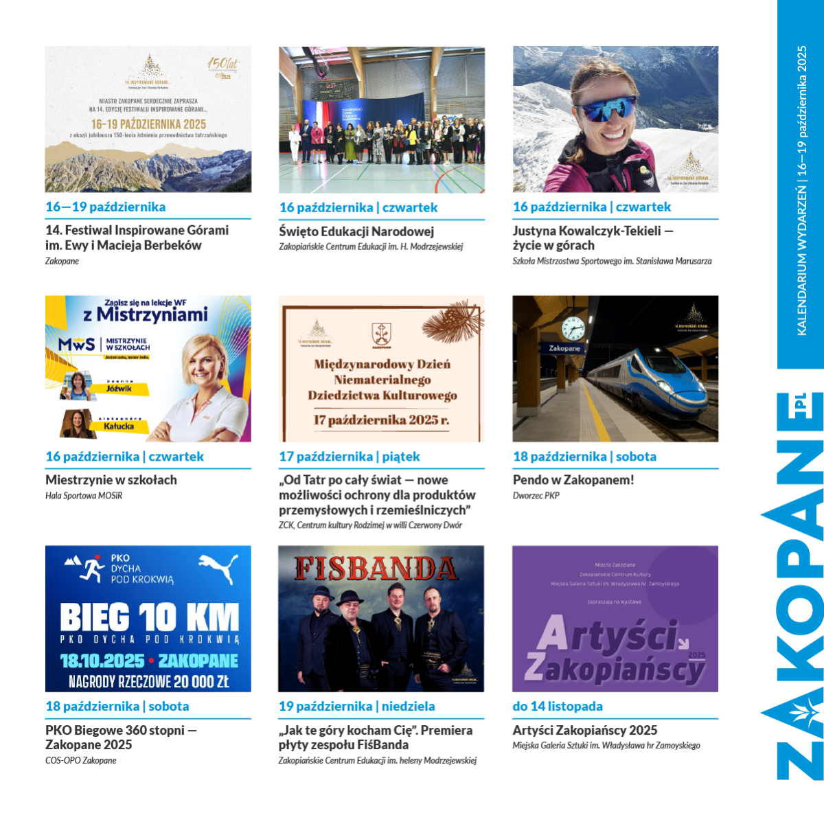 16.10.2025 r. | czwartek - Justyna Kowalczyk-Tekieli – życie w górach. Serdecznie zapraszamy na spotkanie z wybitną multimedalistką olimpijską.