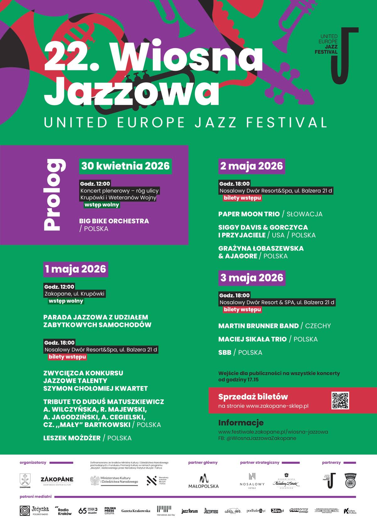 Wiosna Jazzowa to nie tylko koncerty, ale również niepowtarzalna atmosfera majówki pod Tatrami. Górskie plenery, energia miasta i muzyka na światowym poziomie sprawiają, że Zakopane co roku staje się miejscem spotkań fanów jazzu z całej Polski.